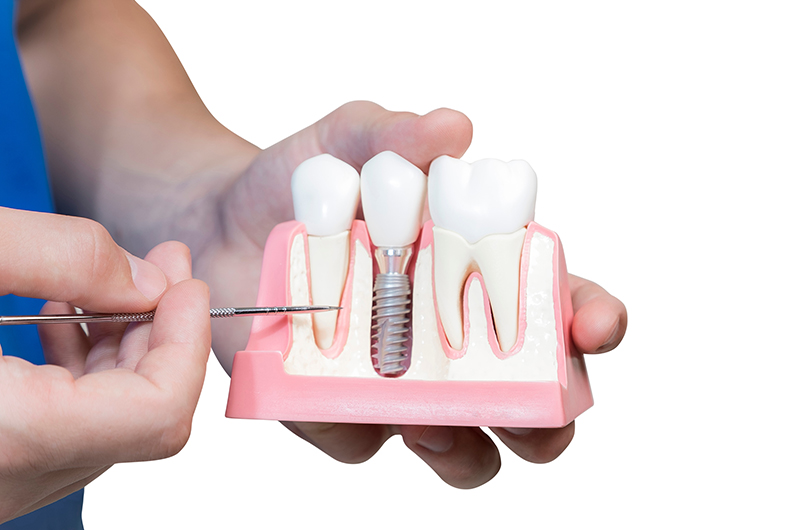 What are Dental Implants? A dental implant is an artificial tooth root that a periodontist places into your jaw to hold a replacement tooth or bridge. Dental implants are an ideal option for people in good general oral health who have lost a tooth or teeth due to periodontal disease, an injury, or some other reason.